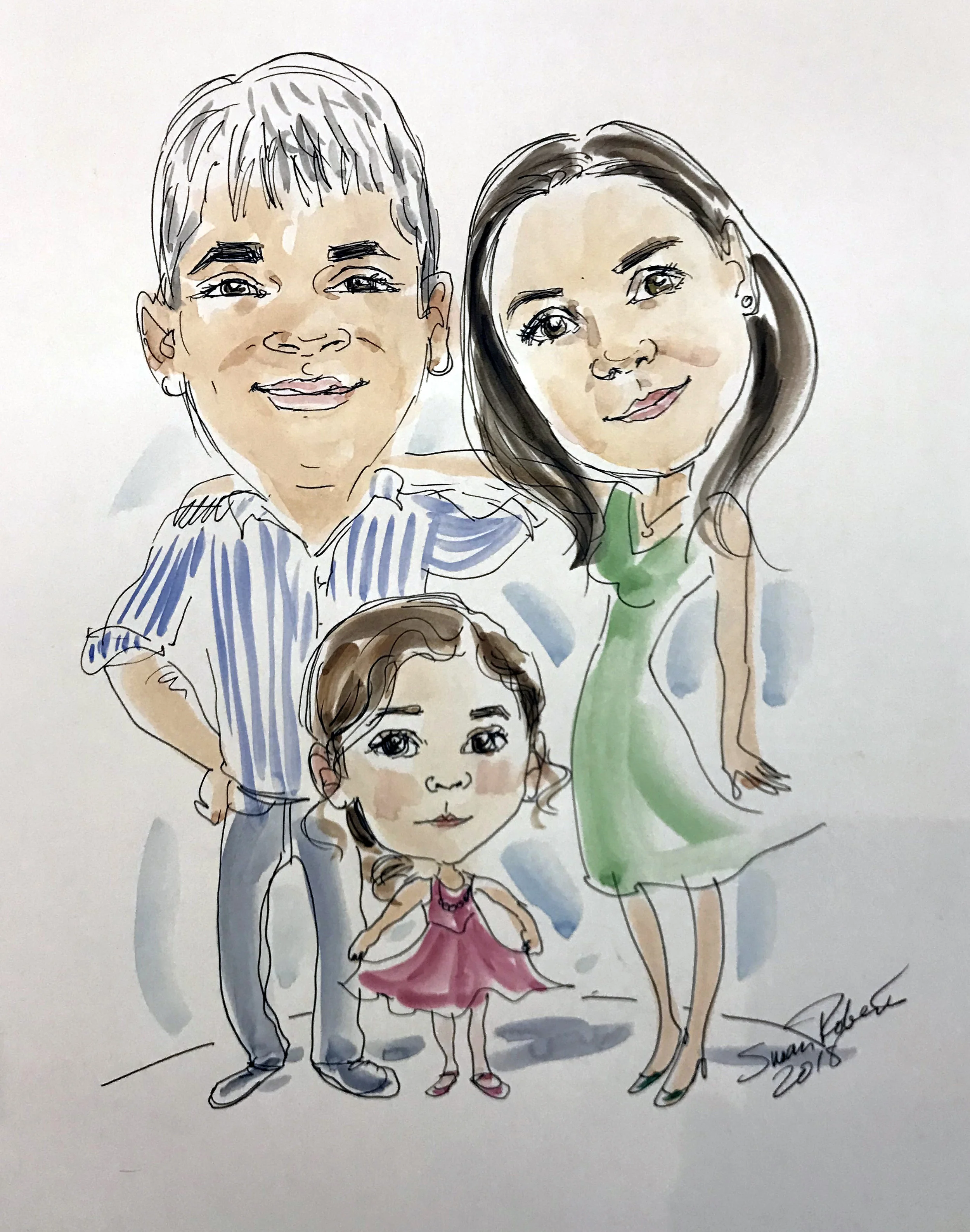 Group caricature with watercolor wash